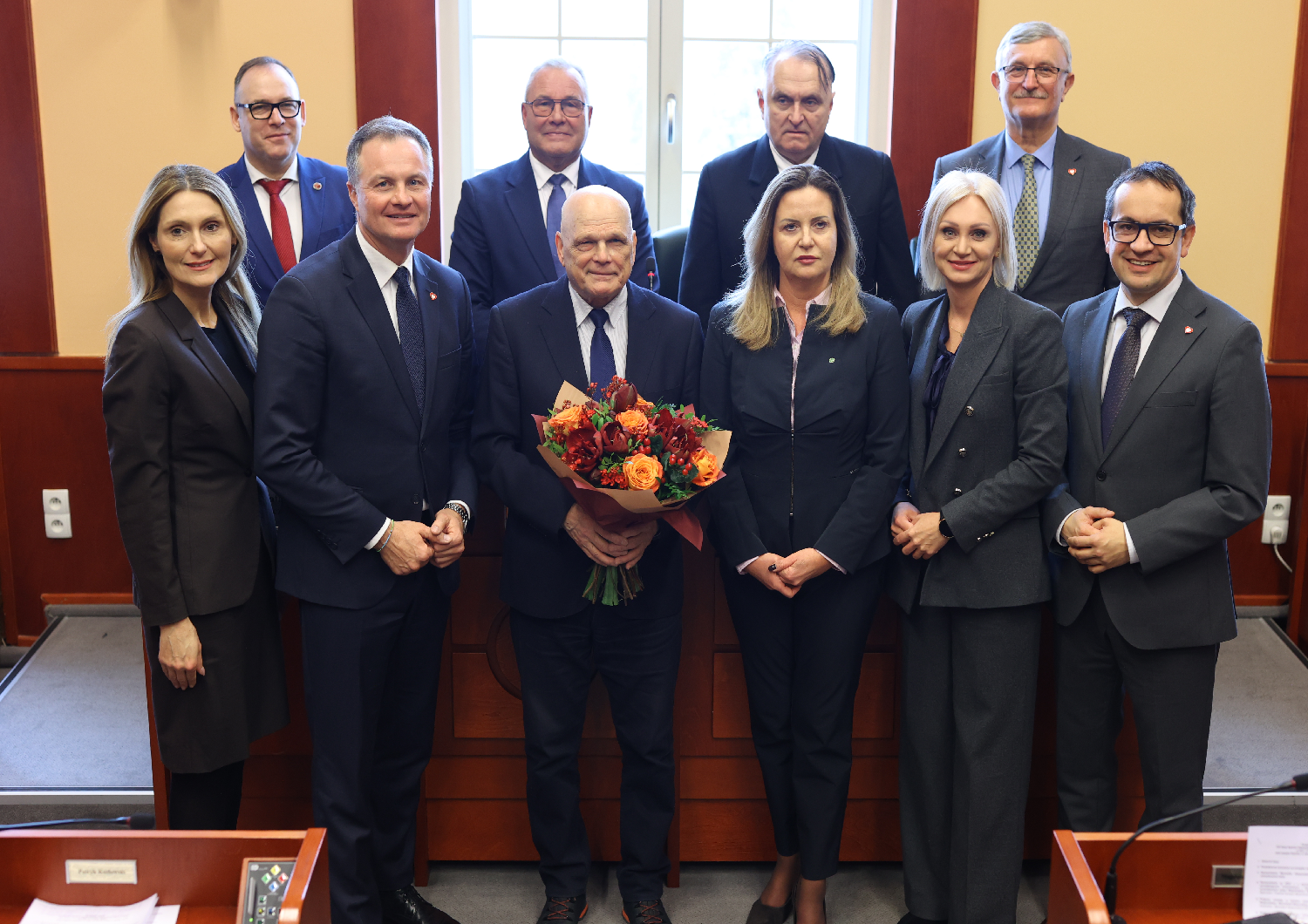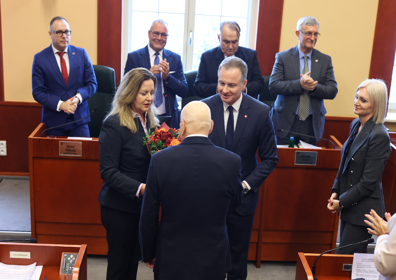 Marszałek wraz z członkami zarządu województwa i radnymi podziękowali za współpracę odchodzącemu na emeryturę Bogdanowi Meinie, dyrektorowi Departamentu Ochrony Środowiska Urzędu Marszałkowskiego Województwa Warmińsko-Mazurskiego, związanemu z samorządem województwa od 1999 roku, przez lata oddanemu pracy na rzecz rolnictwa i ochrony środowiska.