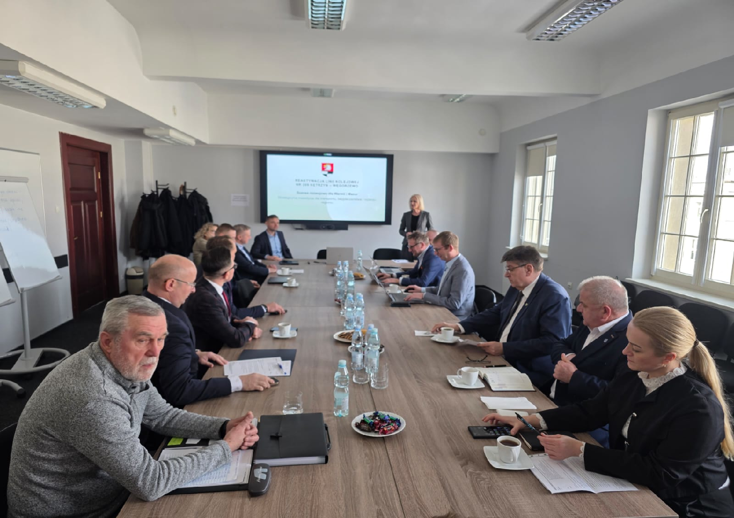 Na zaproszenie wicemarszałek Katarzyny Sobiech odpowiedzieli przedstawiciele PKP Polskie Linie Kolejowe S.A., PKP S.A. oraz samorządowcy z powiatów kętrzyńskiego i węgorzewskiego. Celem rozmów było rozpoczęcie współpracy w zakresie oceny możliwości przywrócenia ruchu kolejowego na trasie z Kętrzyna do Węgorzewa.